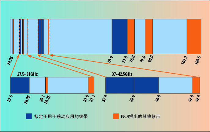 图2. FCC提议用于移动通信的毫米波频段。 尽管ITU、3GPP等标准机构将2020年定为对5G标准进行定义的最后期限,但移动运营商正在加快5G服务的时间进度。在美国,Verizon和AT&T计划在2017年对5G的早期版本进行测试。韩国打算在2018年的冬奥会上进行5G试验,而日本则想要在2020年的东京奥运会上展示5G技术。经过各方组织的努力和推动,目前最有可能用于5G的候选频率包括:28GHz、39GHz和73GHz。 这三个频段的提出有以下几个原因。首先,60GHz的频率由于氧吸收的原因会产生大约20dB/km的衰减,与60GHz不同的是,这些频率的氧吸收率低得多。这使其有可能适用于长距离通信。这些频率在多径环境下也能可靠运行,可用于非视距(NLoS)通信。通过将波束赋形和波束跟踪与高度定向天线结合,毫米波可以提供可靠且非常安全的链路。纽约大学工程学院的Ted Rappaport博士和他的学生已经开始了28GHz、39GHz和73GHz信道特性和潜在性能的研究。他们已经发表了多篇关于传播测量的论文以及这些频率的可能服务中断研究。这些频率的数据和研究结合全球频谱的可用性,使这三个频率成为毫米波原型验证的起点。 服务供应商都渴望获得这些大量未分配的毫米波频谱,他们是决定5G使用哪些频率的关键力量。在日本,NTT DoCoMo与诺基亚、三星、爱立信、华为和富士通合作,对28GHz以及其它频率进行现场测试。2015年2月,三星进行了信道测量,并证明了28GHz是蜂窝通信的一个可行频率。这些测量验证了城市环境中的预期路径衰减:非视距链路的路径衰减指数是3.53。三星表示,该数据表明毫米波通信链路可以支持超过200米的距离。其研究还包括相控阵天线方面的工作。三星已经开始对可能适合手机相控阵列的设计进行特性分析。 2015年9月,Verizon公司宣布将在2016年与三星等重要合作伙伴开展现场试验。2015年11月,高通使用128根天线在28GHz频率下进行实验,演示密集城市环境下的毫米波技术。它展示了定向波束赋形在非视距通信中的应用。随着FCC宣布28GHz可用于移动通信,预计美国将进行更深入的实验和现场试验。Verizon公司还与XO Communications签订了28GHz频谱租赁协议,可在2018年年底前购买该频谱。 但是请注意,28GHz频带并不包含在国际电联的全球可行频率列表中。它是否将成为5G毫米波应用的长期频率选择仍有待确定。无论全球标准如何制定,美国、韩国、日本的频谱可用性,以及美国服务提供商对早期现场试验的承诺有可能将28GHz引入到美国移动技术中。在标准机构最终确定5G标准之前,韩国希望在2018年冬奥会上展示5G技术的愿望也将会推动28GHz应用到消费产品中。事实上,该频率并没有因为不在国际移动通信(IMT)频谱名单上而被忽视,反而引起了FCC的注意。 2016年7月14日,全体委员一致投票赞成开放近11GHz高频频谱用于灵活、移动和固定无线宽带的规则,其中包括3.85GHz需许可的频谱和7GHz免许可频谱。这些规则还在28GHz (27.5-28.35GHz)、37GHz (37-38.6GHz)和39GHz (38.6-40GHz)频段,以及一个新的免许可频段64-71GHz推出一项新的超高南宫在线官方网 灵活应用(Upper Microwave Flexible Use)服务。 虽然28GHz可能不会在全球范围内用于移动通信,但美国正在积极地朝这个方向前进。 原型验证推动毫米波研究的进展 尽管5G广泛采用28GHz频率可能还需要很长的时间,但就目前来说,该频率显然非常重要。过去几年的移动通信主要专注于73GHz(E频段)。诺基亚使用纽约大学在73GHz下的信道测量结果,开始其对该频率的研究。在2014年NI公司的年度用户大会NIWeek上,诺基亚使用NI原型硬件演示了第一个在73GHz下工作的无线demo。该公司将持续改进这个原型,并向公众展示这些最新的成就。在2015年世界移动通信大会(MWC)上,该原型系统使用透镜天线和波束跟踪,实现了超过2Gbps数据吞吐量。诺基亚在2015年布鲁克林5G峰会上展示了该系统的MIMO版本,其运行速率超过10Gbps,而且在之后不到一年的时间里,诺基亚又在2016年的MWC展示了一个超过14Gbps的双向无线链路。诺基亚并不是唯一一家在MWC2016上展示73GHz demo的公司,华为也展示了一个与德国电信合作开发的73GHz工作原型。该demo采用多用户MIMO机制,展示了高频谱利用率以及可为个人用户提供超过20Gbps吞吐量的潜力。 未来几年预期会有更多关于73GHz的研究。该频率不同于28GHz和39GHz的一个重要特性是可用的连续带宽很高(大于2GHz),这是目前提出的最宽的频谱。通过比较,28GHz提供了850MHz的带宽,在美国,39GHz附近的两个频带提供了1.6GHz和1.4GHz带宽。我们前面说过,更高的带宽意味着更高的数据吞吐量,这使得73GHz在这一方面比其他频率更有优势。 39GHz频带正在研究当中,但尚未得到公众的大量支持和关注。但是,该频段具有的部分特性使其可能成为一个折中的选择来获得广泛应用。FCC提议将39GHz作为可能的移动频率。Verizon公司在专注于2017年的28GHz首次现场试验的同时,已经通过其与XO Communications的业务关系开始研究39GHz,XO Communications已经拥有39GHz的实质许可证。但是,公众对28GHz和73GHz的支持和研究显然比对其它频率的更为明显。 为了利用毫米波来实现5G网络,研究人员必须开发新的技术、算法和通信协议,因为毫米波信道的基本性质与当前的蜂窝模式截然不同,并且是相对未知的。建立毫米波原型的重要性再怎么强调都不过分,尤其是在时间如此紧迫的情况下。建立毫米波系统原型可通过某种方式展示某