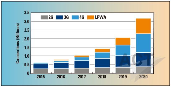 NB-IoT和eMTC让物联网进入4G网络时代 NB-IoT and eMTC Make 4G Networks Ready for the Internet of Things Jörg Köpp 罗德与施瓦茨公司,德国慕尼黑 当前物联网(IoT)的大多数设备彼此之间,以及这些设备与云端应用之间的通信通常采用传统的机对机(M2M)无线通信技术。然而要求全球覆盖及移动性的某些应用,将会采用蜂窝技术。当前,主要采用2G和3G网络,但未来属于诸如增强型机器通信(eMTC)和窄带IoT(NB-IoT)等新技术。借助这些技术,移动运营商可以获得更大的无线IoT市场份额。 例如省电模式(PSM)、扩展不连续接收周期(eDRX)和增强覆盖(CE)等功能,可根据IoT应用的不同需求,对无线接口进行调整。为了满足性能和可用性方面的全部要求,所有通信层(物理层、信令层、IP层和应用层)必须相互协调地工作。因此,必须增强端到端的应用测试功能,以优化电源消耗和反应时间等指标。 高移动性和广覆盖的IoT应用利用了卫星技术或蜂窝移动无线电技术。目前,约86%的蜂窝IoT设备采用了第二或第三代移动网络1。典型应用包括船队管理、集装箱跟踪、咖啡自动售卖机、ATM银行业务和个人健康监控等。这些应用中的绝大多数应用产生的数据流量很小,通常只需要SMS短信服务来传输这些数据即可。图1给出了M2M蜂窝连接的年预期增长率。