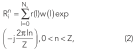 其中:Z代表快时间补零,Ns代表快时间域内的模数转换器样本数目,r(l)和w(l)分别代表样本值和窗口函数,而Rin表示ith啁啾和nth距离区间中的距离谱值。