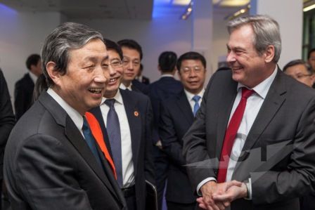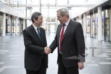 中国国务院副总理马凯先生率政府代表团一行40余人到罗德与施瓦茨公司总部参观访问。 随后,马凯副总理一行参观了罗德与施瓦茨公司的产品展示中心,来自测试与测量、安全通信、广播电视与媒体及无线电监测与定位各个领域的技术专家介绍了公司全面的无线技术解决方案,并做了现场演示。期间,马凯副总理饶有兴致,仔细聆听技术专家的讲解,不时发问了解细节,并与弗莱施曼总裁亲切交流。